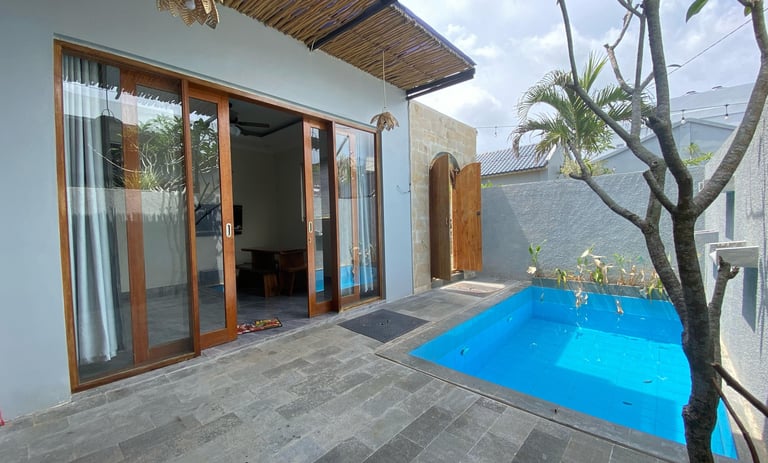 Hilltop Villa Kutuh reflects our design-build approach to modern minimalist tropical living. These site photos, taken as of June 2025, showcase key architectural features including arched windows, natural wood accents, skylights, and open-plan spaces designed for light, airflow, and timeless appeal. This project is a testament to our commitment to detail, structure, and site-specific elegance.