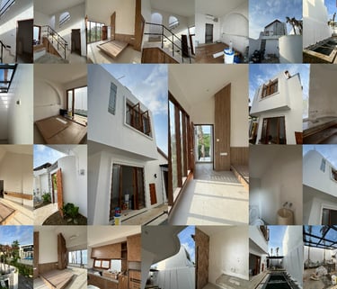 Hilltop Villa Kutuh reflects our design-build approach to modern minimalist tropical living. These site photos, taken as of June 2025, showcase key architectural features including arched windows, natural wood accents, skylights, and open-plan spaces designed for light, airflow, and timeless appeal. This project is a testament to our commitment to detail, structure, and site-specific elegance.