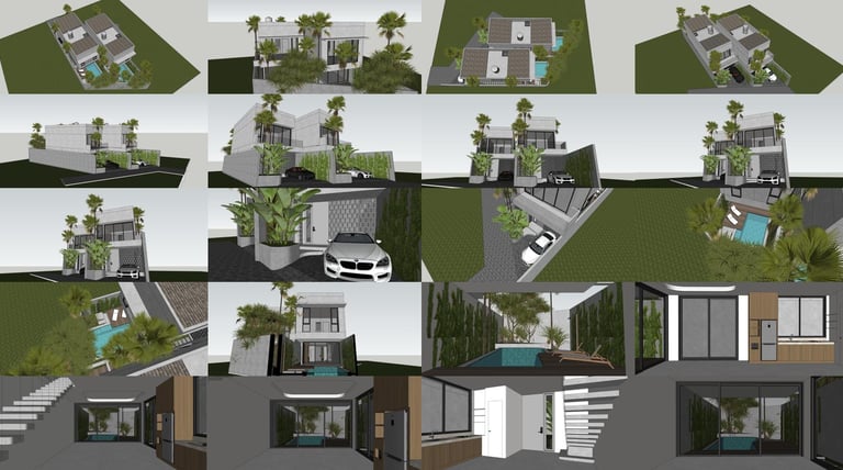 A pair of modern Japandi villas designed with clean architectural lines, warm natural materials, and a private pool courtyard. Located in the heart of Berawa, this project reflects our signature approach: efficient land use, functional tropical living, and timeless design. Construction begins Q3 2025.